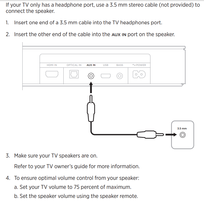 In order for this to work, the Guest's TV must have an HDMI Audio Return Channel (ARC) port and they must have their own HDMI cable. The port looks like this: