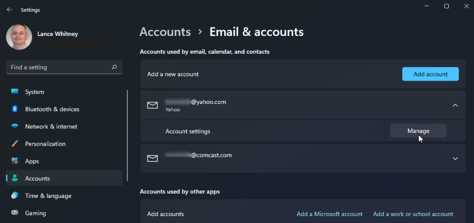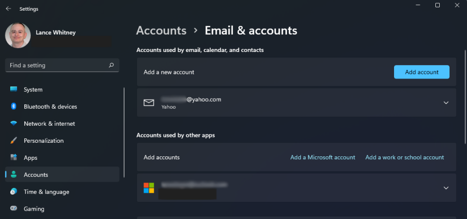 Whether you use a local account or a Microsoft Account to sign into Windows 10 or 11, you may have other accounts that you use for specific apps. Perhaps you have a Yahoo account for email, a Google account for events and appointments, or an Outlook account for contacts. You could have another Microsoft account to run certain Microsoft apps and services. And you might even have a separate work or school account.