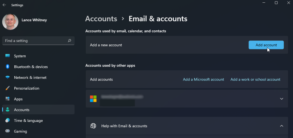 Let’s say you want to add an email account so you can easily access messages sent to that address. In Windows 10 or 11, go to Settings > Accounts > Email & accounts. Click Add account.