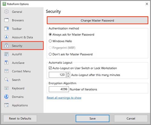 How to change Master Password on RoboForm