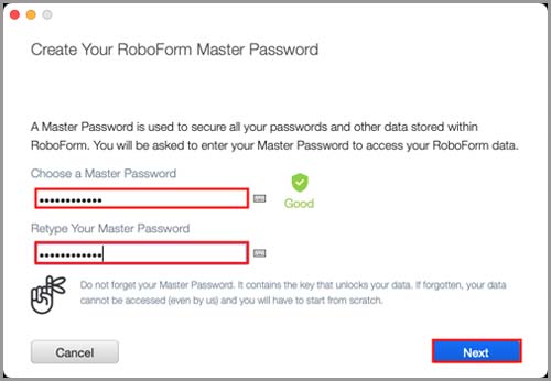 Ensure that you will remember your new Master Password. If you ever forget your Master Password, you will be unable to log in to your account and will have to reset your password, which will wipe the data from your account.