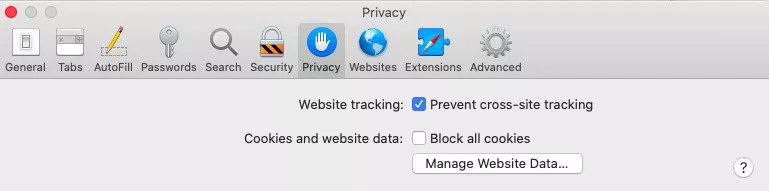 2. Navigate to the Privacy tab — click Manage Website Data