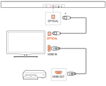 When both HDMI ARC and optical cables are connected to the soundbar for audio input from TV connection, the HDMI ARC connection is prioritized.