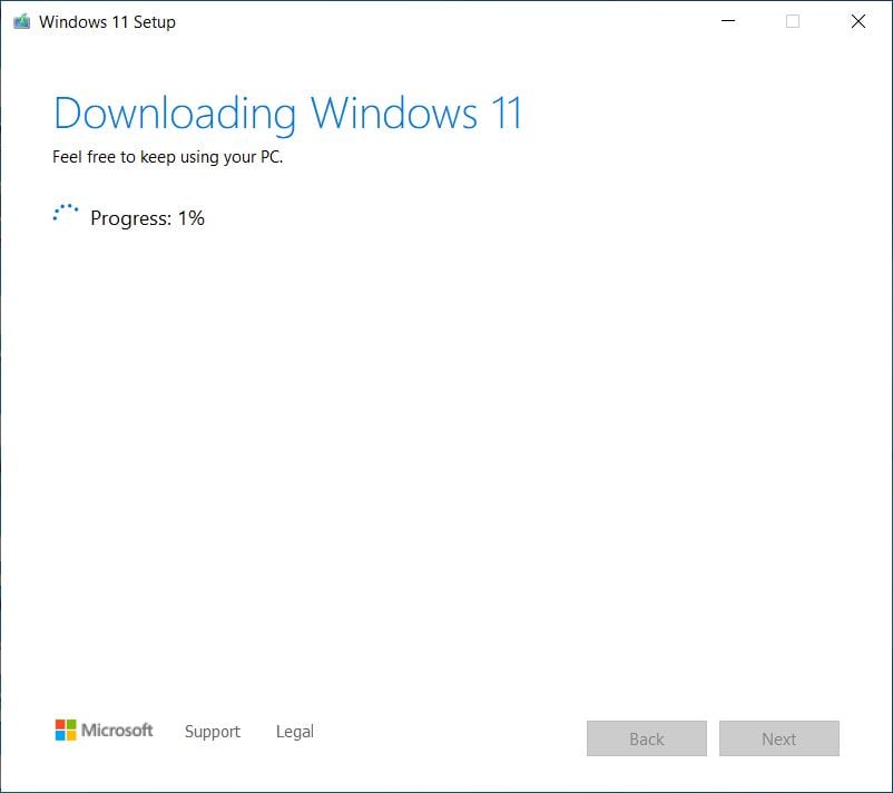 12. Then click next, windows 11 installation files are going to download. The download time depends on your Internet speed