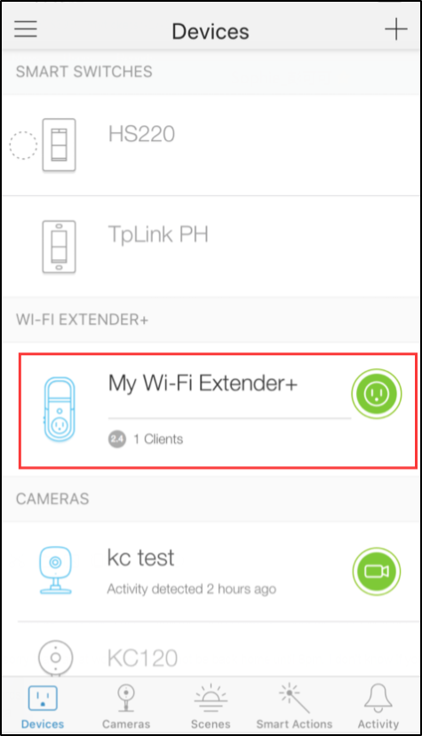 Step 2. Open the Kasa App, and find the Wi-Fi extender. Tap on the desired device.