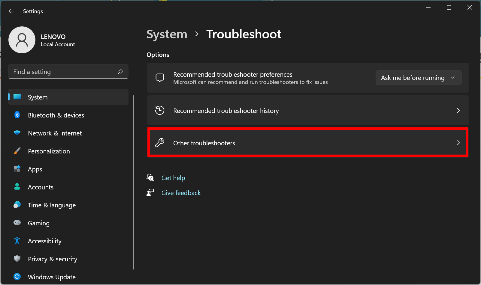 In the next window, choose Other troubleshooters.