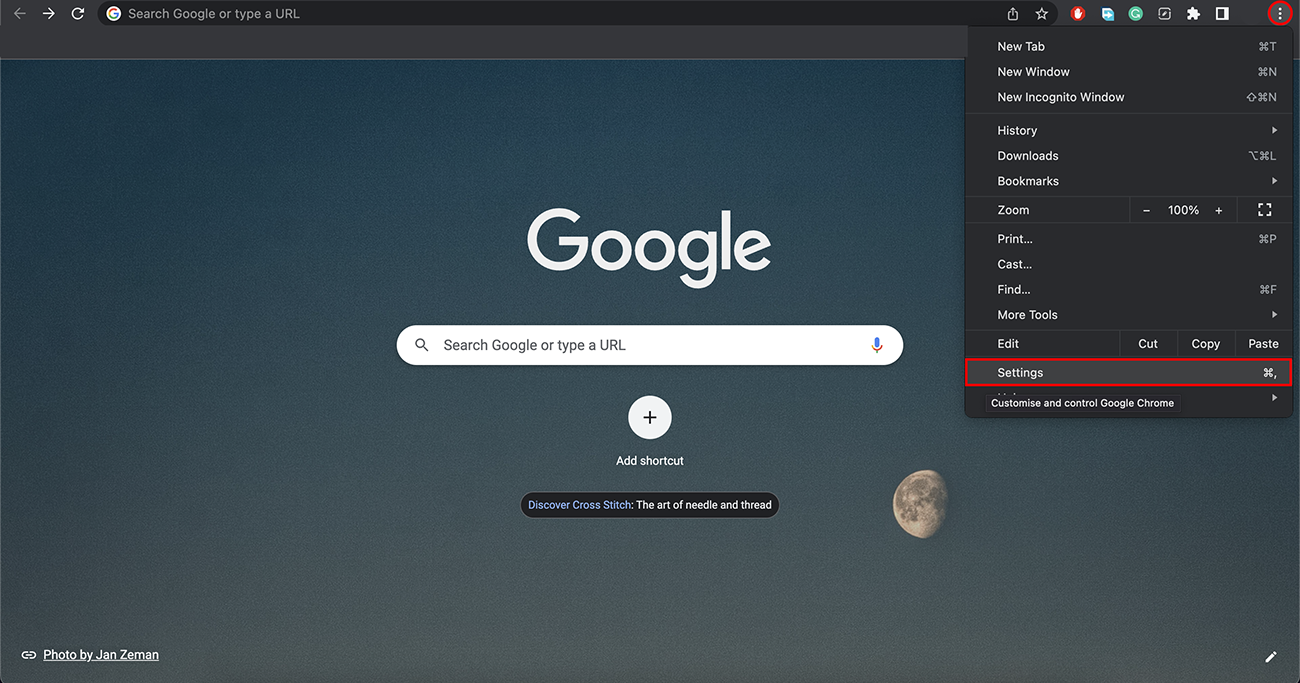 Tap on the three dots near the top right and choose Settings.