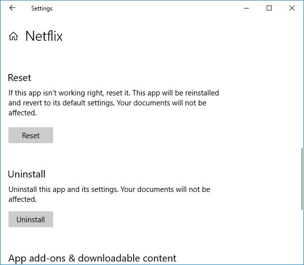 If you’re getting the error inside the Windows Netflix app, Reset the application its default setup most likely fix the problem. To do this