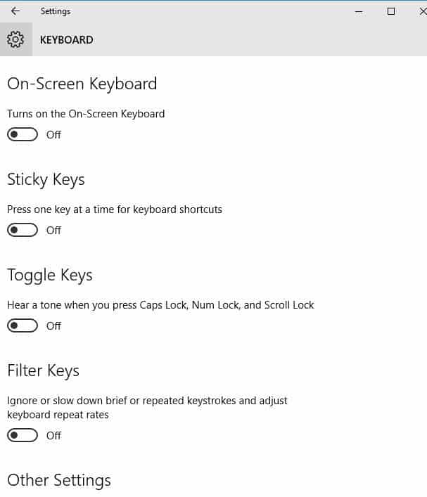 7. Disable Filter keys settings