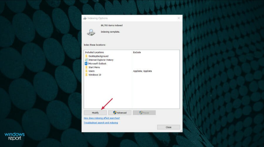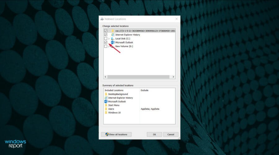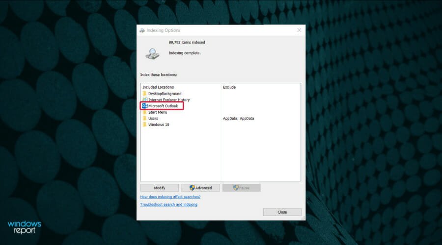 If indexing finishes without including Outlook data files or doesn’t finish, contact Microsoft support for help.