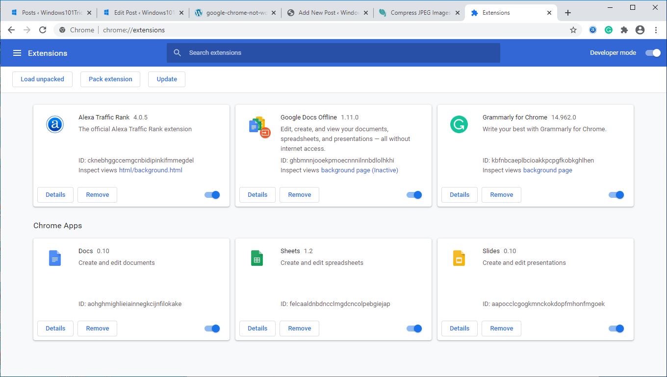 1. Open Chrome browser, Then in the address bar type Chrome://Extensions to view all the extensions installed on Chrome.