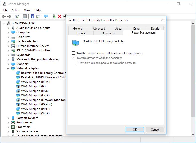 7. Disable Power Saving for network Adapter