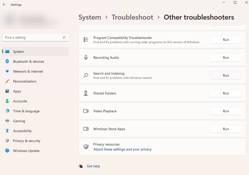 Microsoft also offers a built-in search troubleshooter and running that automatically detects and fixes search problems on windows 11, follow the steps below on how to use it