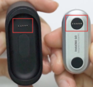 Place GO into Charge Case, align the charging points of the camera and Charge Case