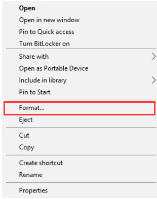 Click 'My Computer' -> right click 'Removable disk' -> click 'Format'