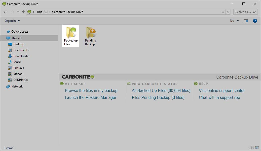 1. Let's begin by opening the Carbonite Backup Drive through the File Explorer window (alternatively called Windows Explorer in older Windows operating systems). Do this by double-clicking the Carbonite Backup Drive icon