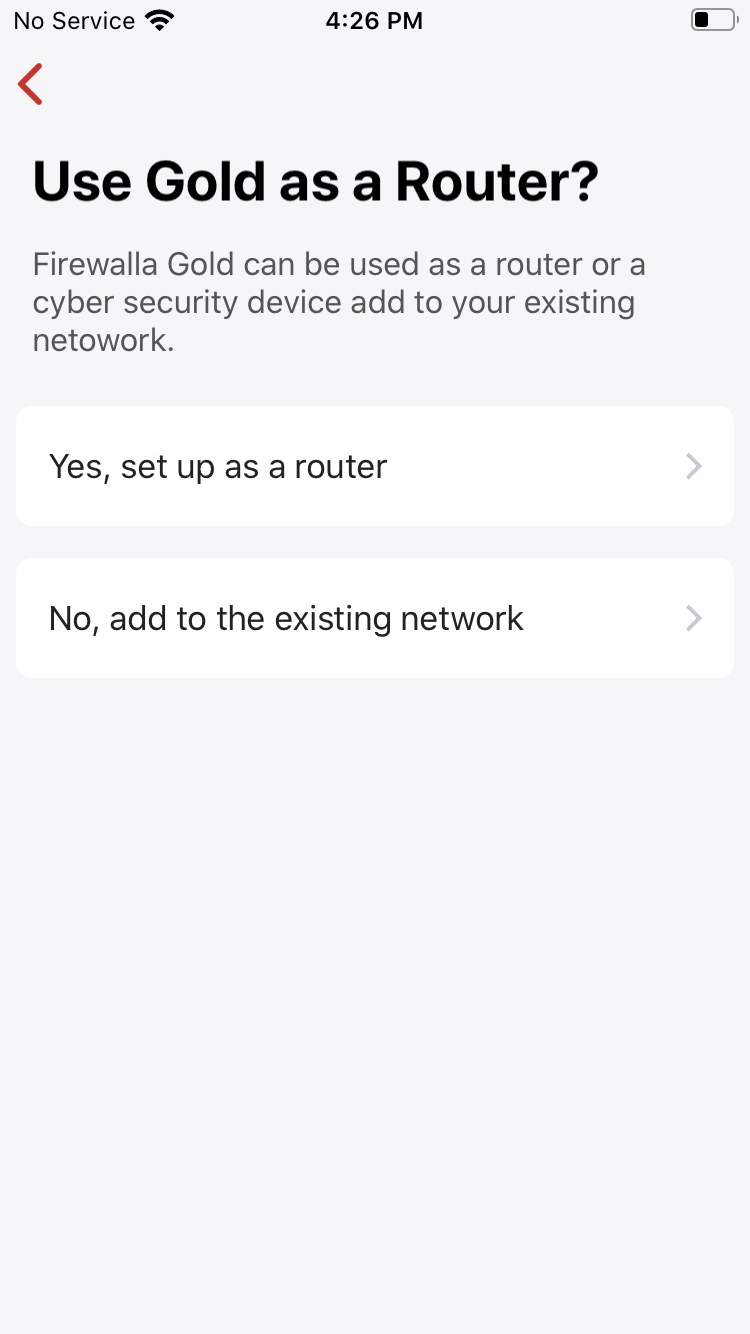 We highly recommend using the Firewalla Gold in router mode. In this mode, the Firewalla Gold will become your main router and it will manage your network inline between your network and your ISP modem/router.
