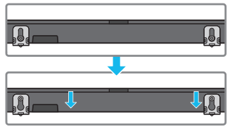 Slide the Soundbar down as shown below so that the Bracket-Wall Mounts rest securely on the Holder-Screws. • Insert the Holder-Screws into the wide (bottom) part of the Bracket-Wall Mounts, and then slide the Bracket-Wall Mounts down so that the Bracket-Wall Mounts rest securely on the Holder-Screws