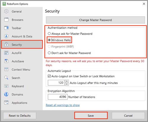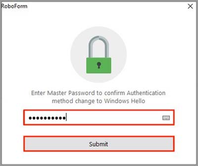 Selecting Windows Hello as Your RoboForm Authentication Method