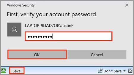 5) You will be asked to verify your Microsoft account password. Enter the password and click the "OK" button.
