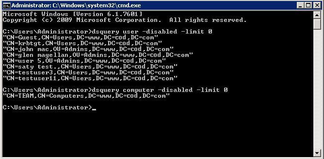 dsquery computer -disabled -limit 30