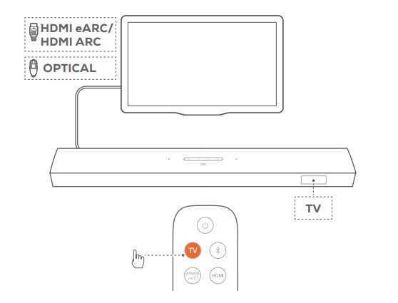 To select the TV source, press the button on the soundbar or TV on the remote control