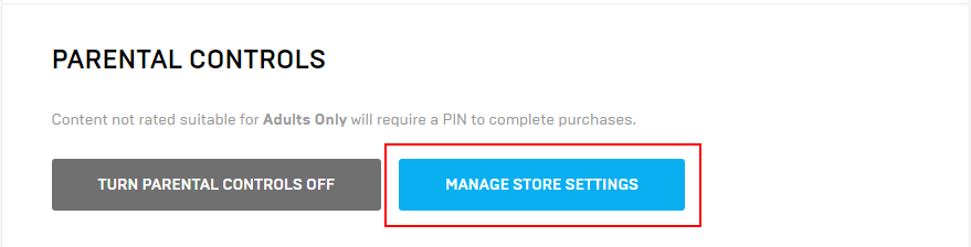 - Scroll to PARENTAL CONTROLS and click MANAGE STORE SETTINGS.