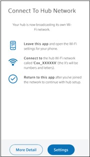 On the Wi-Fi screen, tap the Cox_XXXXXX network to connect to the Automation hub