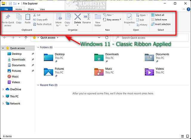 Now, the next time you open Windows 11 File Explorer, you will see the familiar classic ribbon of commands