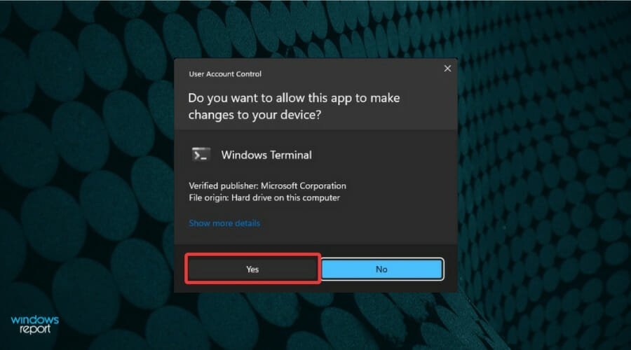 Choose Yes in the UAC pop-up.