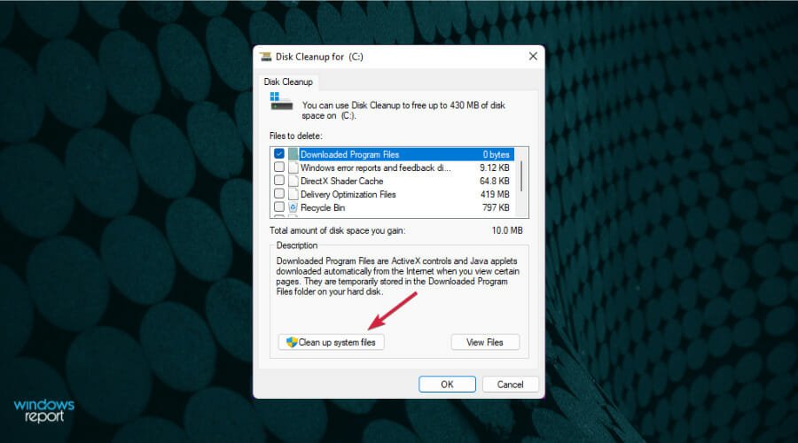 Click the Clean up system files button.