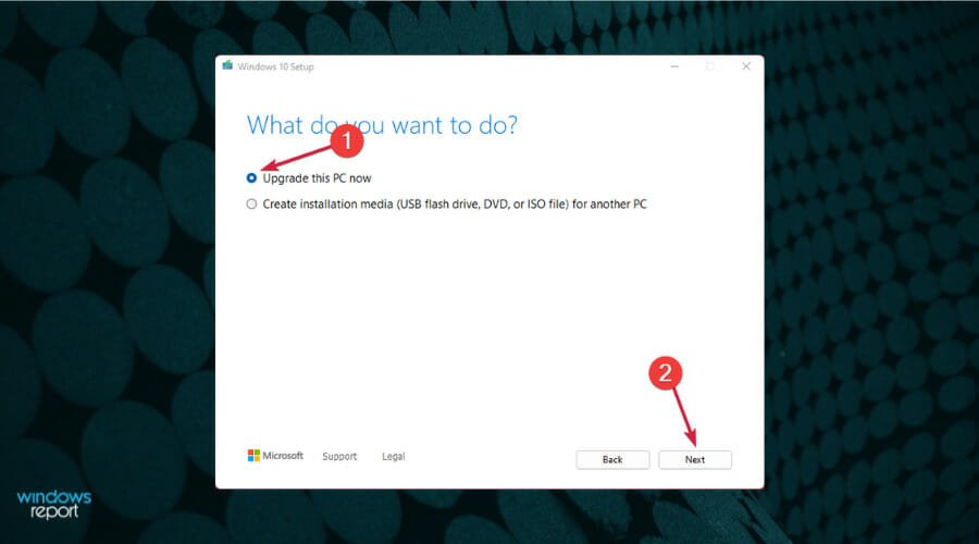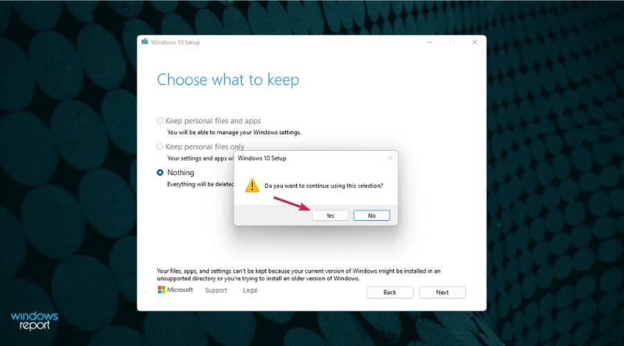 After these steps are completed, your OS will try to install Windows 11, but the needed files were removed, so the process will not go through.