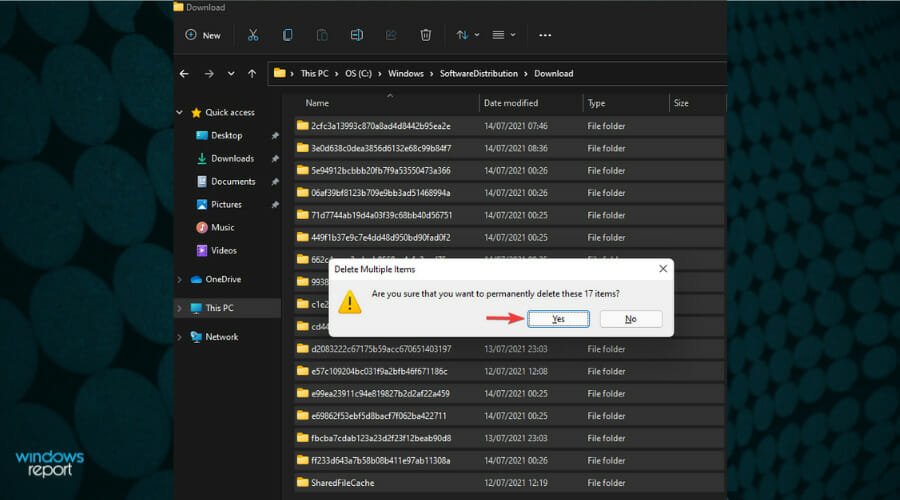 Press Shift + Delete to completely remove the files and click Yes to confirm.