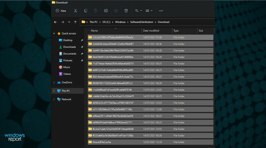 Press the Windows key + E to start File Explorer and navigate to the following path: C:\Windows\SoftwareDistribution\Download
