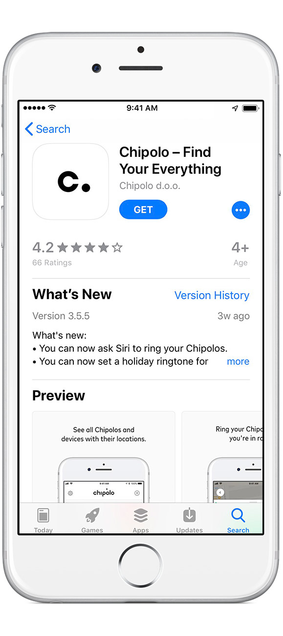 Go to Apple App Store, download and install the Chipolo mobile application.