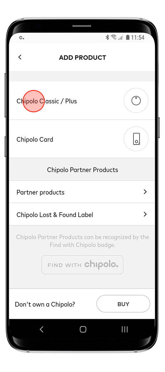 Now tap on 'Chipolo' and select the model in the next step. If you don't have Chipolos you can also buy them via 'Buy' at the bottom.