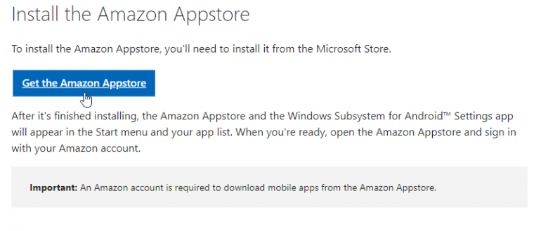 Next, go to Microsoft’s support page for installing apps with the Amazon Appstore. Scroll down to the section for Install the Amazon Appstore and click the button for Get the Amazon Appstore (Figure A).