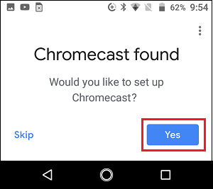 5. Wait for Google Home App to Locate your Chromecast device and tap on Yes to continue.