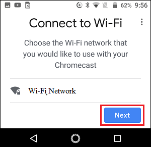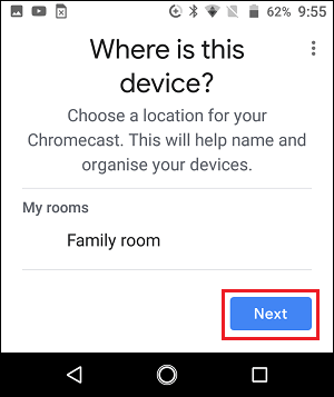 8. Next, select a Location for your Chromecast Device and tap on Next.