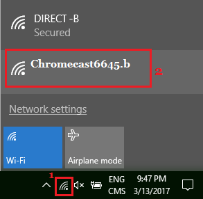 5. Next, click on the WiFi icon located to at the right corner of the taskbar on your Computer and then click on Chromecast’s open WiFi Network (See image below).