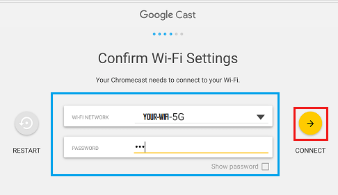 9. Next, you will be asked to confirm your WiFi Settings. Select your WiFi Network, Enter the Password for your WiFi network and click on Connect.