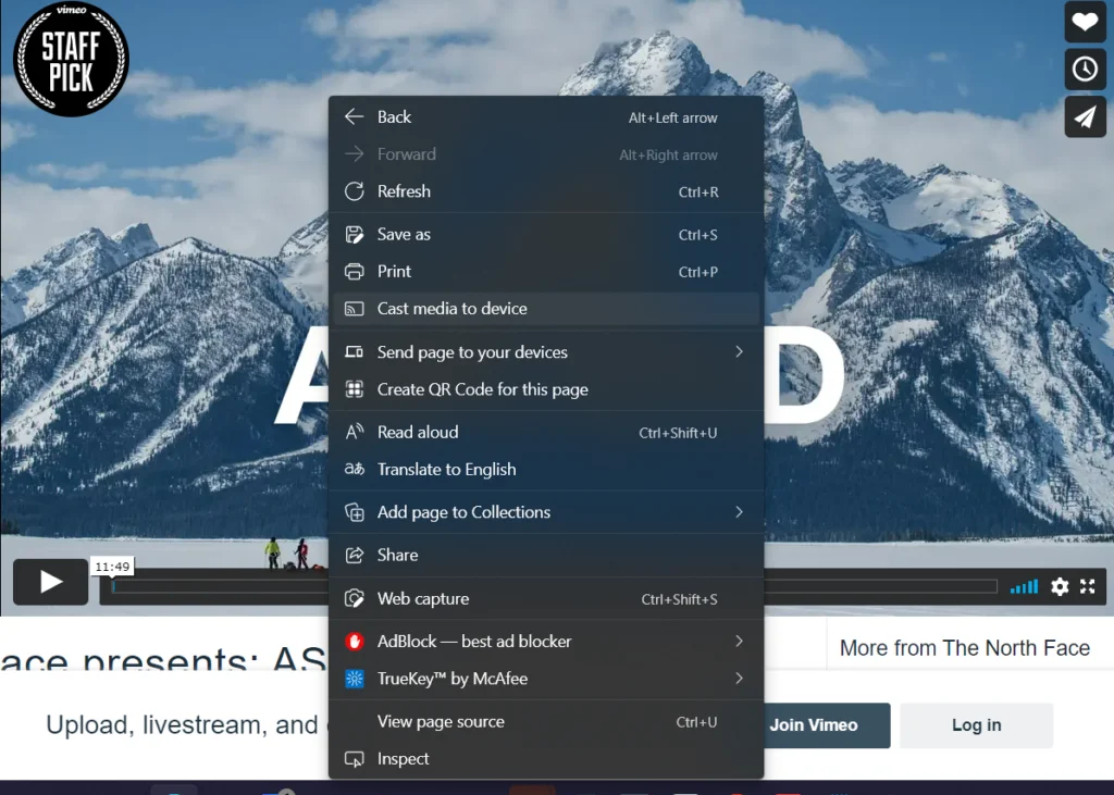 Once the browser restarts, again go to the video and right-click on it and again select Cast media to device