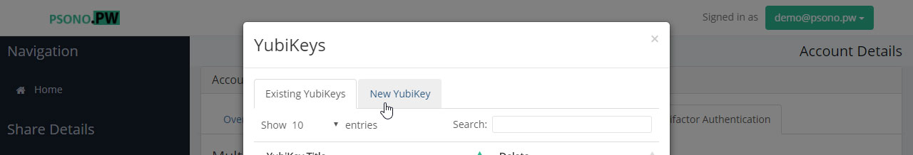 - Click the "New Yubikey" tab: