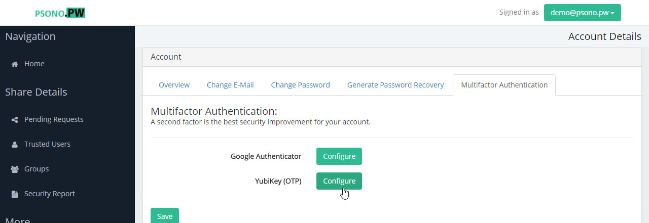 How to setup YubiKey with Psono