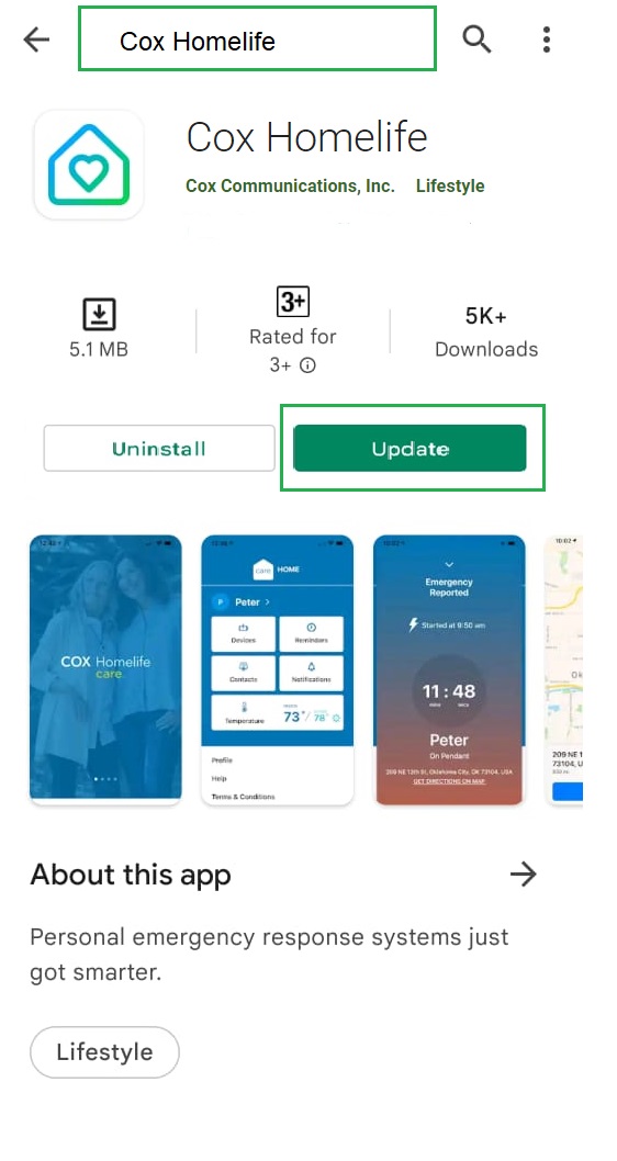 Search for "Cox Homelife" and tap on the found app