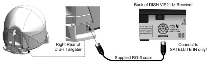 - Check that the coax cable between your receiver and the DISH Tailgater is connected properly and hand tightened.