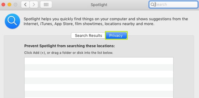 After you select an identity or profile, it will be displayed in the Privacy section. Directories that are listed in this section are no longer indexed by Spotlight.