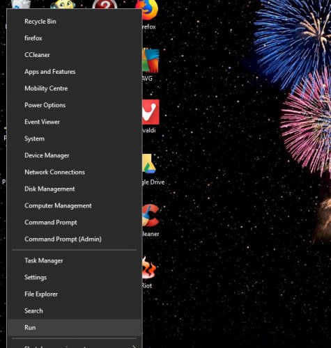 Right-click the Start button to open the Win + X menu. Then click Run to open that accessory.