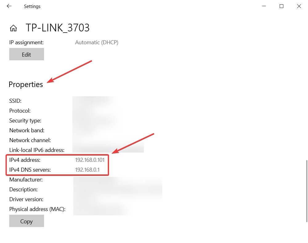 Locate the IPv4 DNS server and memorize the IP address.