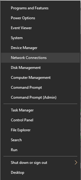 Select Network Connections from the menu.